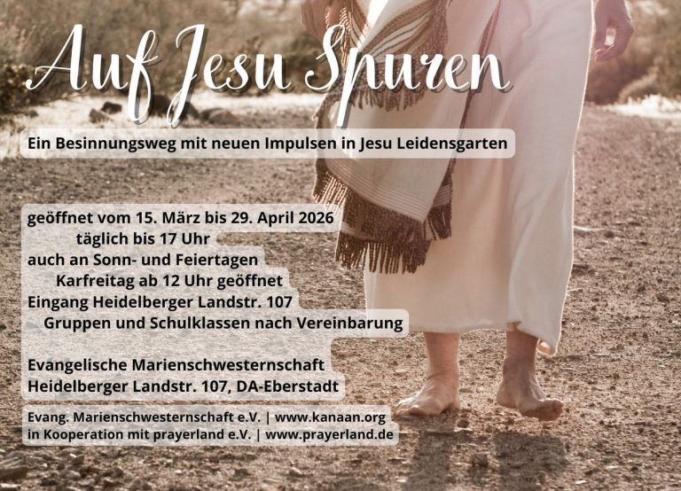 - In den kommenden Wochen (bis Ende April) gibt es zudem einen Stationenweg „Auf Jesu Spuren“, der durch neue Impulse zum kreativen Beten, Nachdenken und Verweilen einlädt.