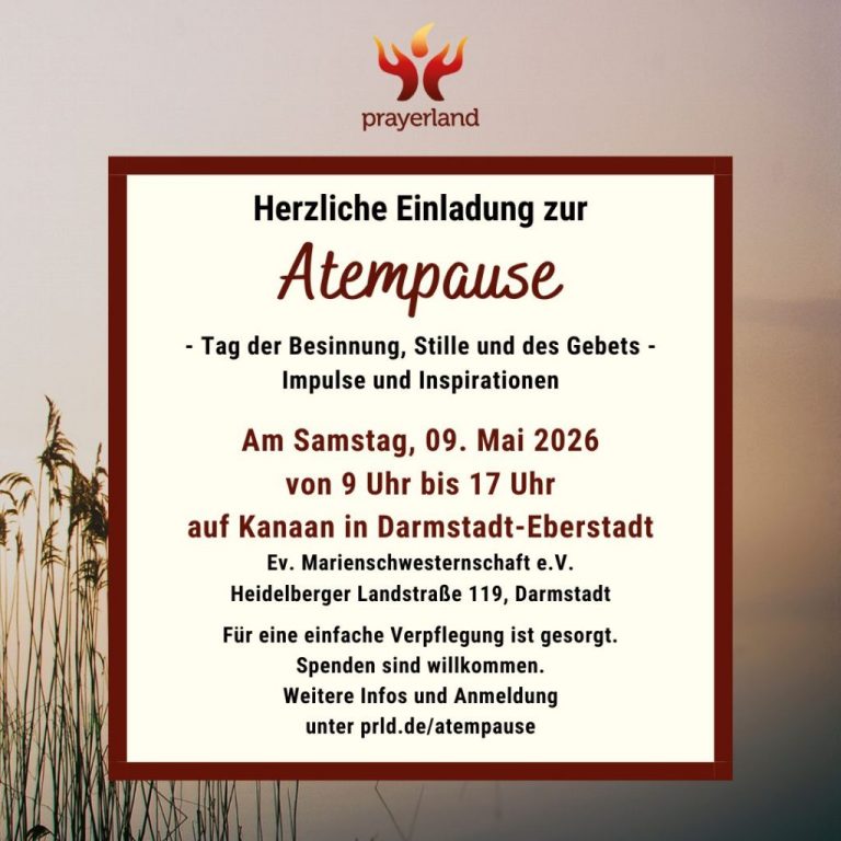 Hörbuchs „Ich will hier bei Dir stehen“ von Mutter Basilea Schlink. Mit einer Zeit der Anbetung schließen wir den Nachmittag um ca. 16.30 Uhr ab.